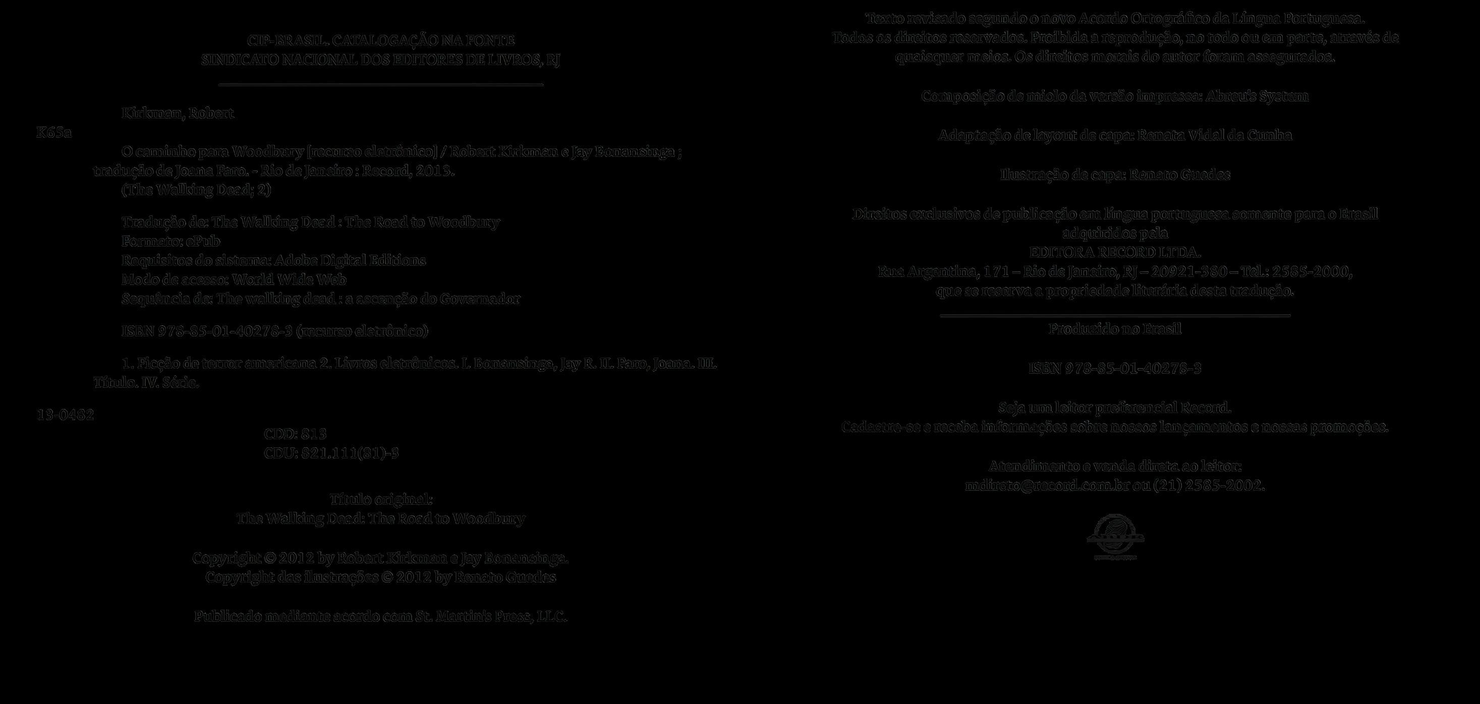 Para todas as pessoas que, ao longo dos anos, me fizeram parecer muito mais talentoso que sou: Charlie Adlard, Cory Walker, Ryan Ottley, Jason Howard e, claro... o senhor Jay Bonansinga.
