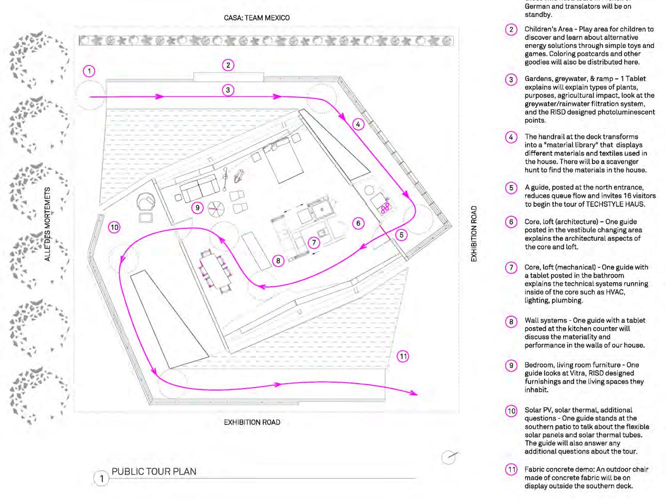 Techstyle Haus was designed, prototyped, and built as a tourable exhibition at the Solar Decathlon Europe 2014 in Versailles, France, with a focus on education about implementing sustainability strategies through material innovation.