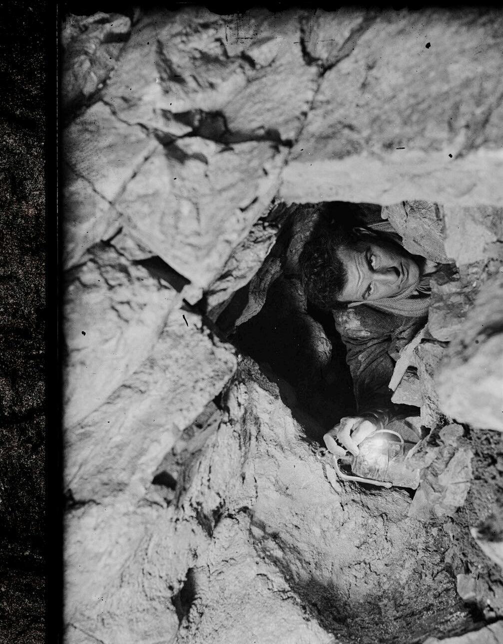 Stanisław Zdyb i Mariusz Zaruski pokonują konia na grani Długiego Giewontu.