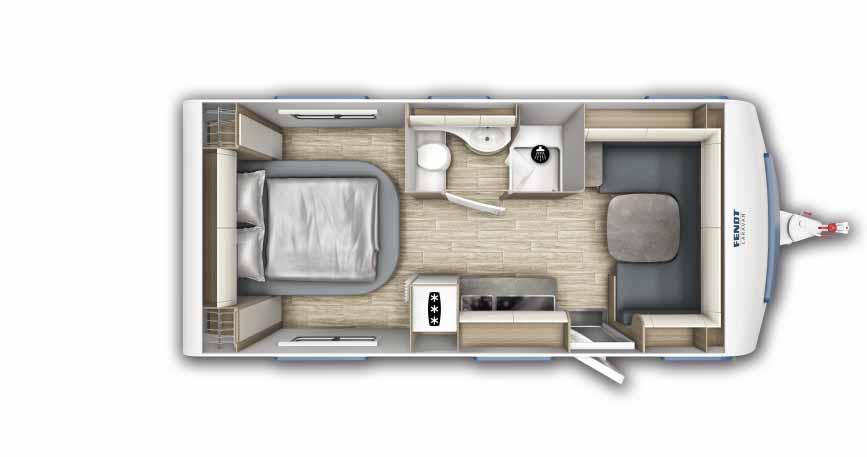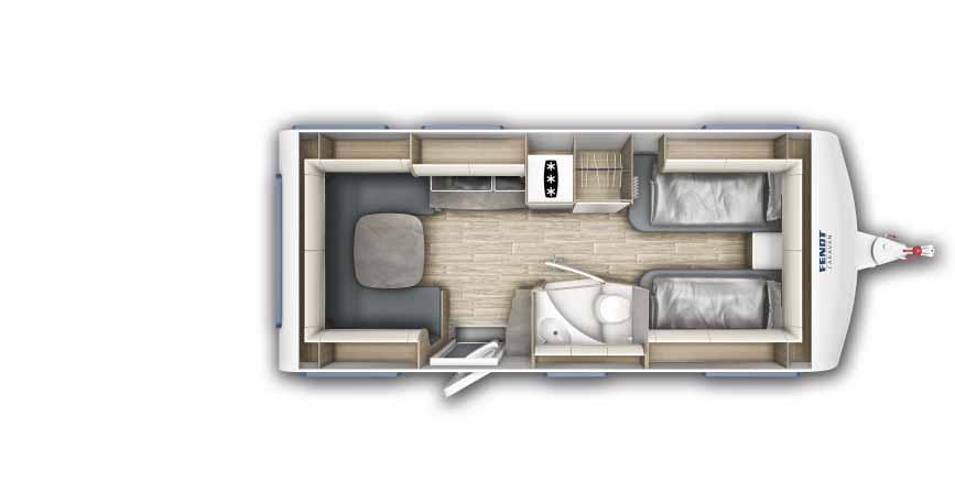 g) Additional weight variants are possible by installing a new chassis – your Fendt Caravan dealer will be happy to provide you with information