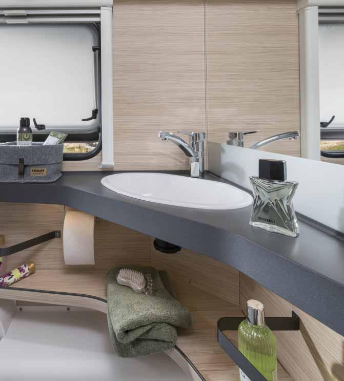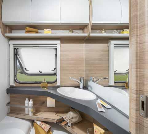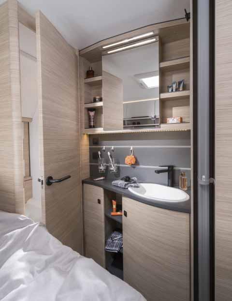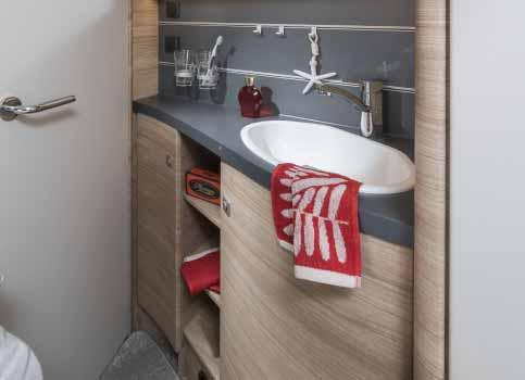 • Central washrooms* with large wall units, generous shelves under the sink and an illuminated mirror