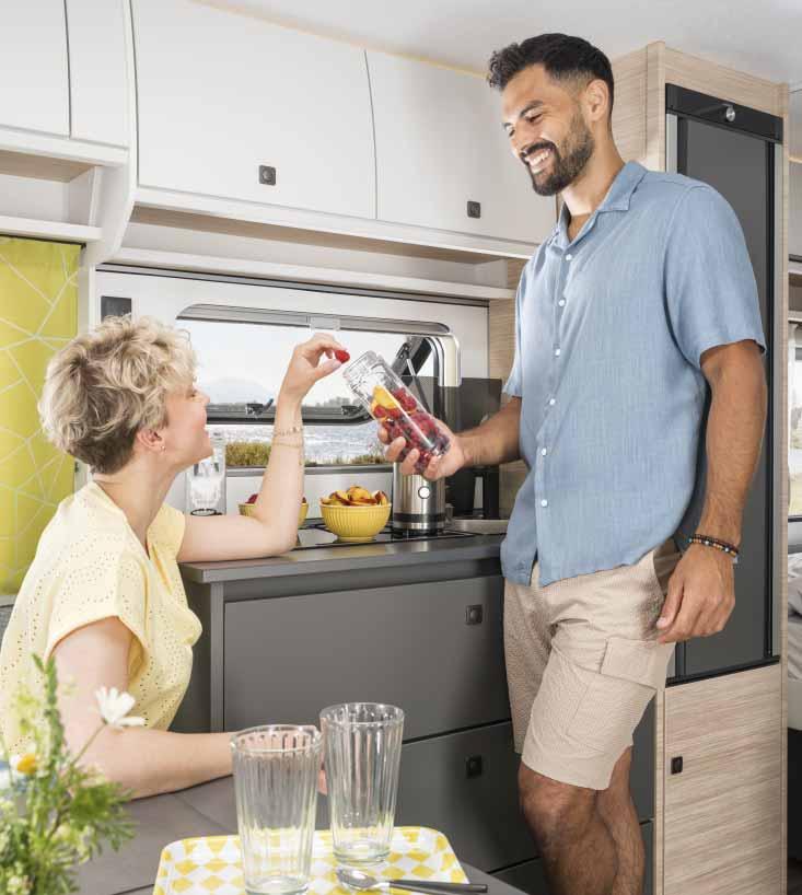 • MIDI roof hood (Dometic) with crank, forced ventilation, integrated blackout pleated blind and roller fly screen integrated in a Skylight panoramic roof hood