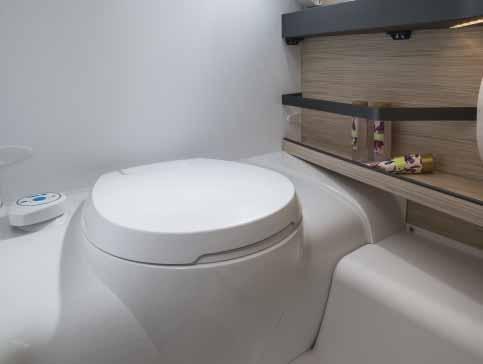 • Flush toilet with diode level indicator and holding tank (rollable)