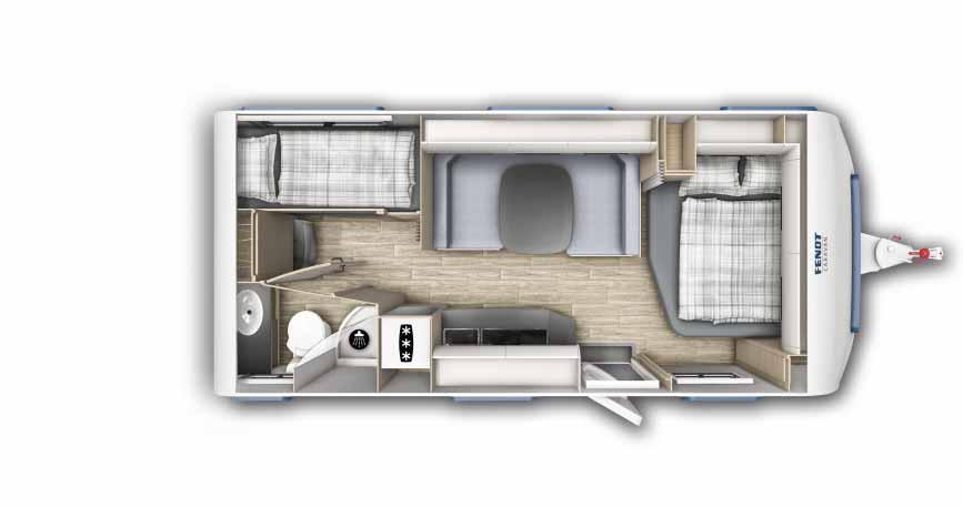 +++ 12-year warranty on the imperviousness of the body connections: this warranty is only valid in connection with the annual, fee-based inspection carried out at your authorised Fendt Caravan dealer +++ Certified to ISO 9001:2015 +++ Environmental management certification according to ISO 14001:2015 + ++ Metallic paintwork +++ 47 mm floor thickness for optimal insulation values +++ Drain cocks for convenient emptying of the water pipes +++ Solid, screwed connections +++ Two-part sidewall panel +++ Sturdy furniture made of multi-glued plywood +++ Extra robust hinges, positioners and locks +++ 2-pole residual current device/safety switch with 30mA