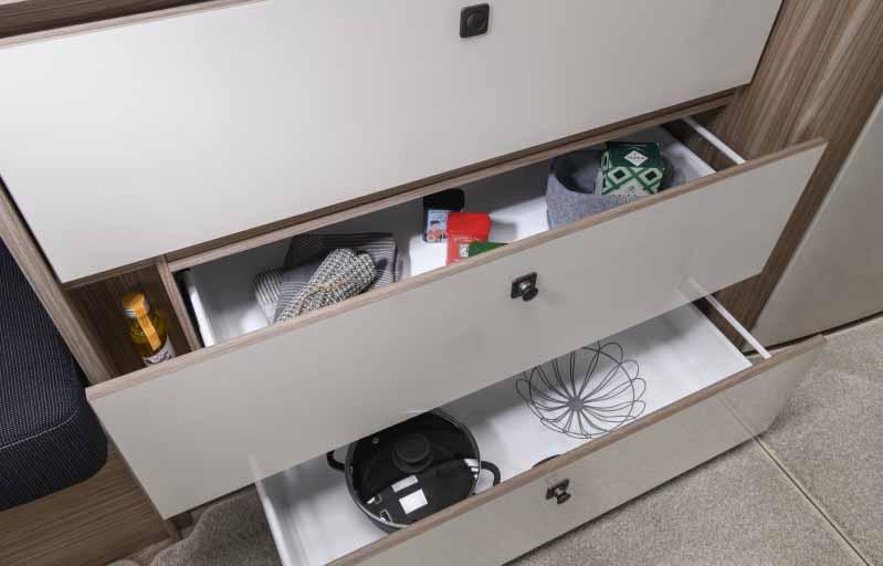 • Storage boxes with fold-up "Free Space" fitting and soft-close