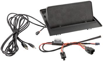 Verstärker 6-Kanal, max. Ausgangsleistung 320 W, Einbauort Subwoofer unter Beifahrersitz, Kabellänge (Radio – Verstärker) 1 m, Kabellänge (Verstärker – Subwoofer) 3,3 m, Maße (B x H x T) Verstärker 17,5 x 5 x 4,5 cm, Maße (B x H x T) Subwoofer 37 x18,8 x 21,3 cm.