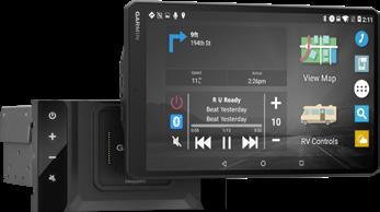 Das voll integrierte und dennoch mobile Infotainment-System kombiniert in seinen 2 Varianten camperspezifische Garmin Navigation mit dem umfangreichen Fusion Premium-Entertainment. Das System besteht aus dem RV 52 Stereo Dock Einbauelement, auf welches das ausgewählte Bedienteil (separat zu bestellen) mit 8“ oder 10“ großem Bildschirm aufgesetzt wird. Das Bedienteil kann vom Radio abgenommen und als Fernbedienung im Innen- und Außenbereich des Wohnmobils verwendet werden. Neben der fahrzeugspezifischen Routenführung sorgen die integrierte Freisprechfunktion, Sprachsteuerung sowie die Fahrerassistenz mit Hinweisen vor Gefahrenstellen für zusätzliche Sicherheit während der Fahrt. Via Smartphone und der Garmin DriveTM App erhalten Nutzer zudem Smart Notifications, Verkehrsinformationen sowie Wetterdaten und mehr in Echtzeit direkt auf das Display. Zudem sind umfangreiche