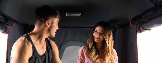 Includes: 4 universal clamps for attachment to roof bars, 2 doors/ windows with mosquito-netting, soundproof and anti-condensation roof insulation, stowage net, 1 mattress and 2 pillows, interior light, 1 height adjustable alloy ladder, full opening on the back with graduated darkening, outer door with Crystal window, elastic cord for secure rear door closure, anti-condensation Air Climate, ladder storage bag, elastic straps assist in folding the fabric when closing.