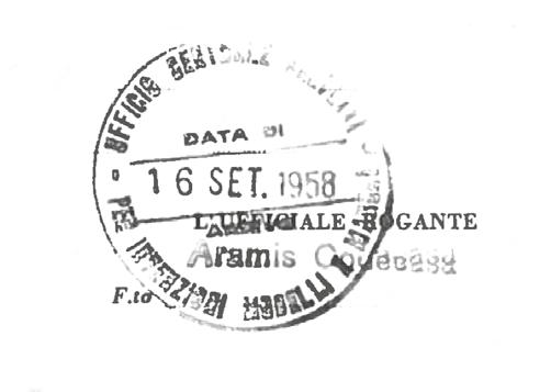 1. Patent drawings No. 595326 Year 1958 Ministero dell'Industria e del Commercio di Milano