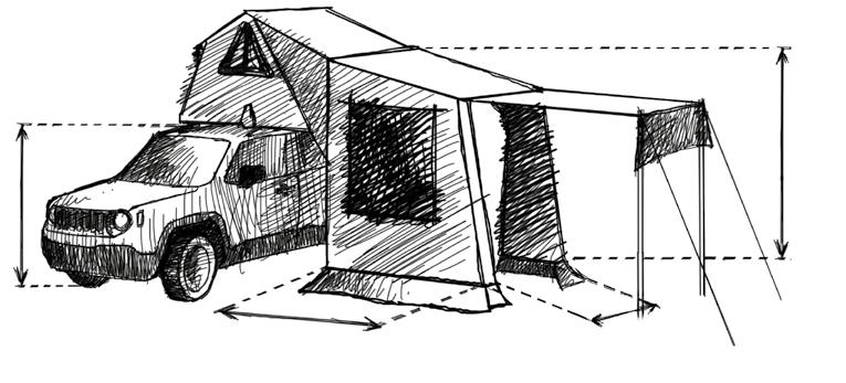 Includes: 4 universal clamps for attachment to roof bars, 2 windows and 2 large doors all with mosquito-netting, 1 mattress and 2-4 pillows, 2 awning support poles, (hold open doors to create awning) 1 PVC travel cover, 1 height adjustable steel ladder. Wing included.
