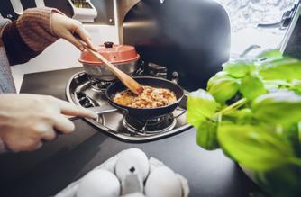 Ob kleiner Snack, Frühstück oder Abendessen – die durchdachte Küche kann alles. 3-flammiger Gaskocher mit Glasabdeckung, LED-Panel über dem Küchenblock, Küchenschubladen mit Selbst-Einzug und Soft-CloseFunktion sind nicht selbstverständlich, im Premio Life schon.