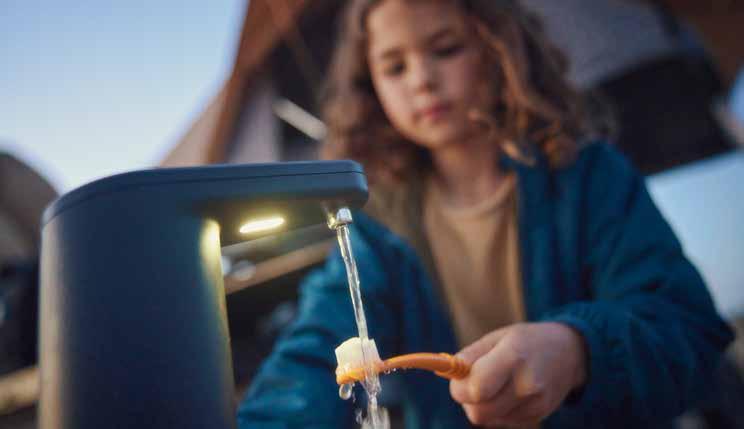 The Dometic GO Hydration Water Faucet turns any water container into an outdoor kitchen faucet, letting you dispense only what you need with no waste.