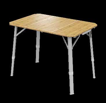 • Constructed from solid bamboo (surface) and aluminum (legs), with an integrated carrying handle