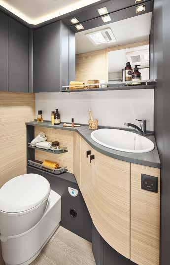 Having a bathroom on board makes you self-sufficient. Thanks to the “HobbyKomplett” ALL-INCLUSIVE package, your Hobby comes with everything you need for personal care from the very beginning. In addition to a toilet, shower and washbasin, the bathroom also has room for all your towels and other items thanks to our flexible solutions.