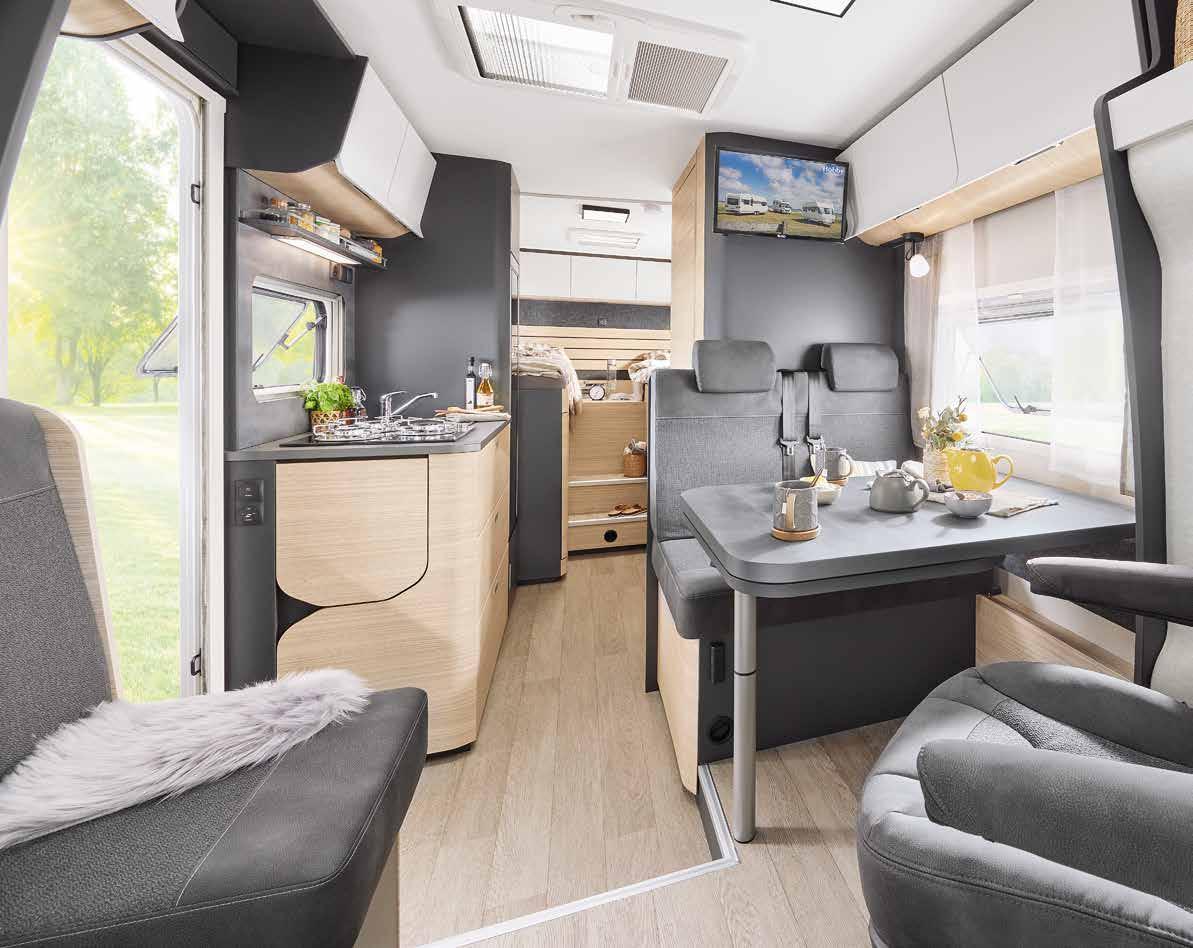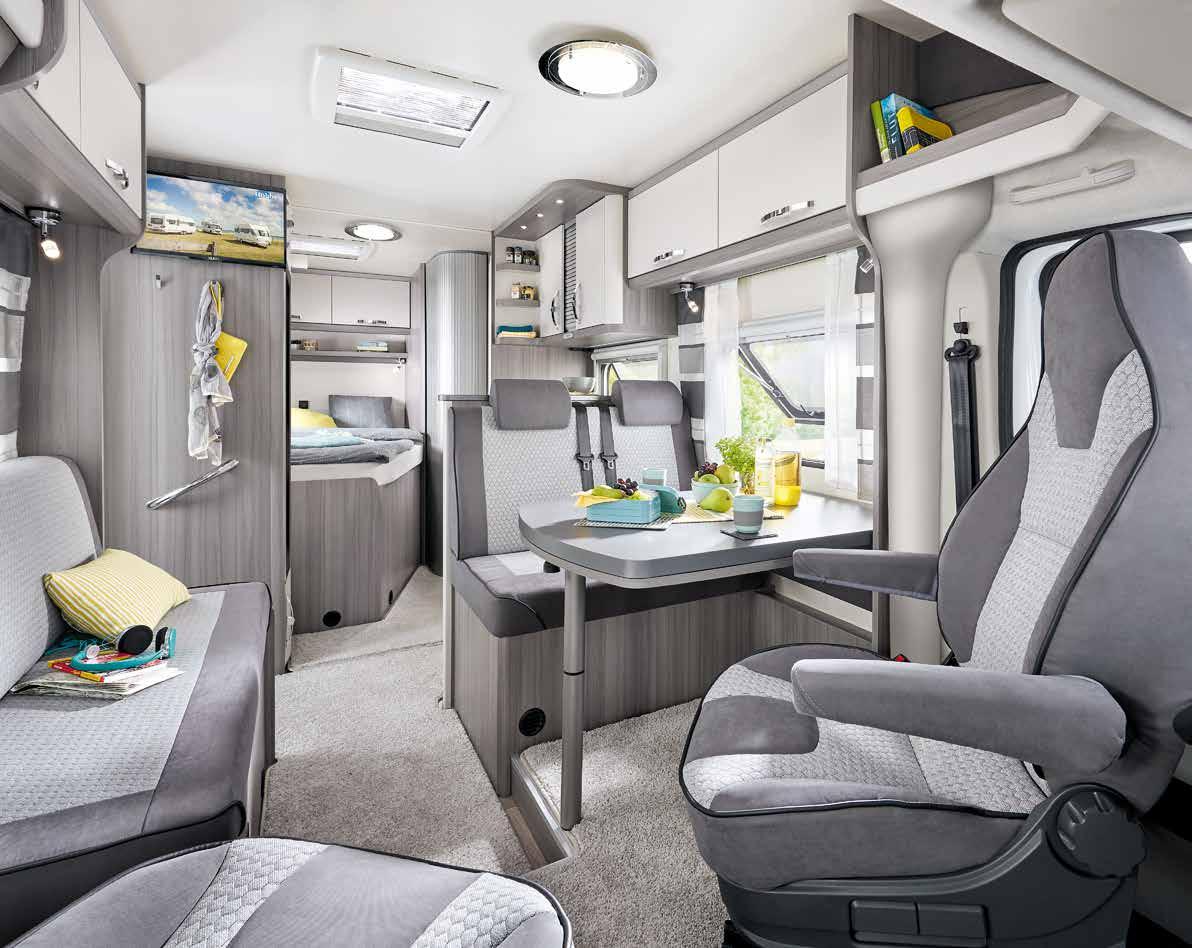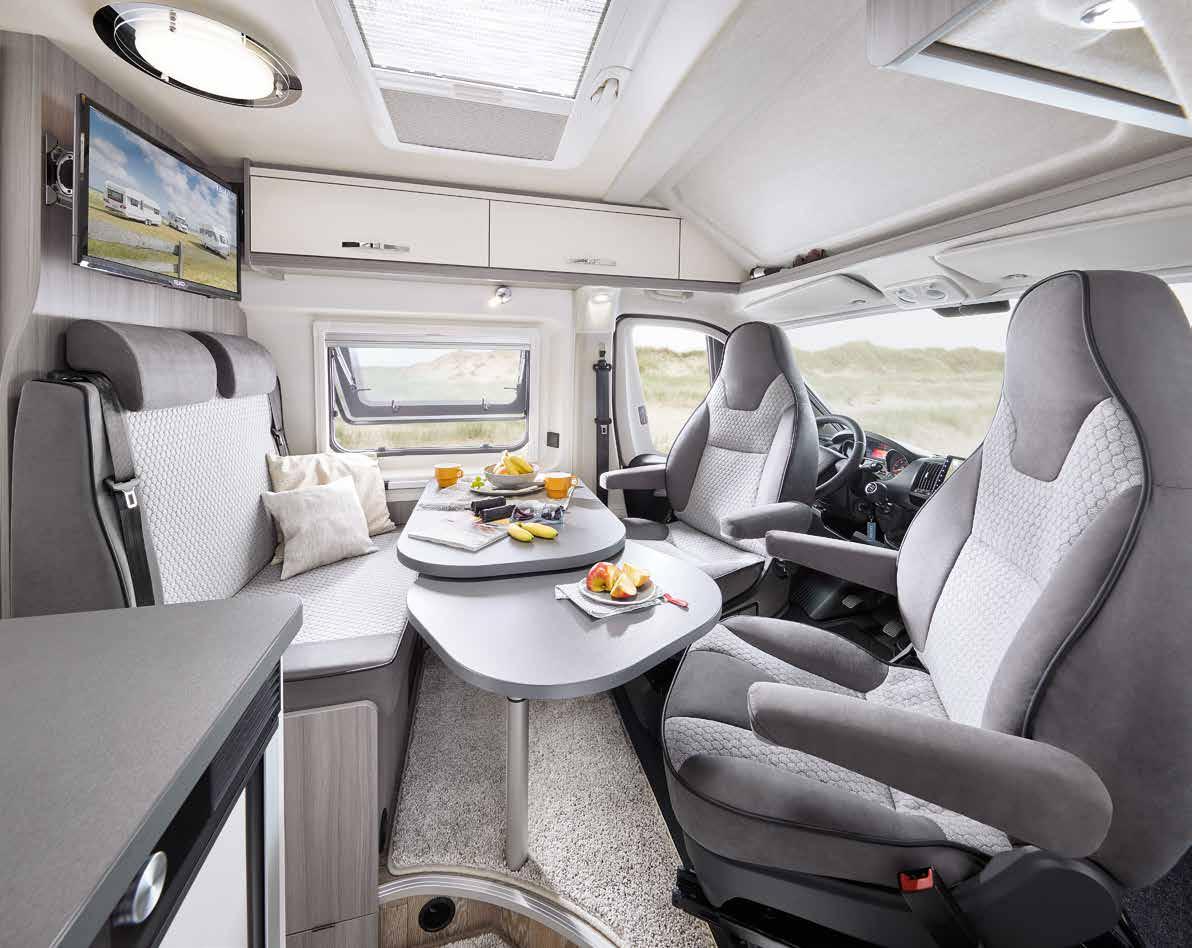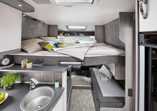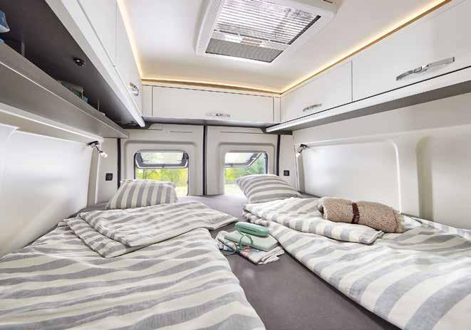 Thanks to its compact dimensions (2.23 m in width), you’ll be able to negotiate narrow and bendy roads with confidence. The edition models come with a wide range of equipment and are available with two layout options – with an island bed or single beds.