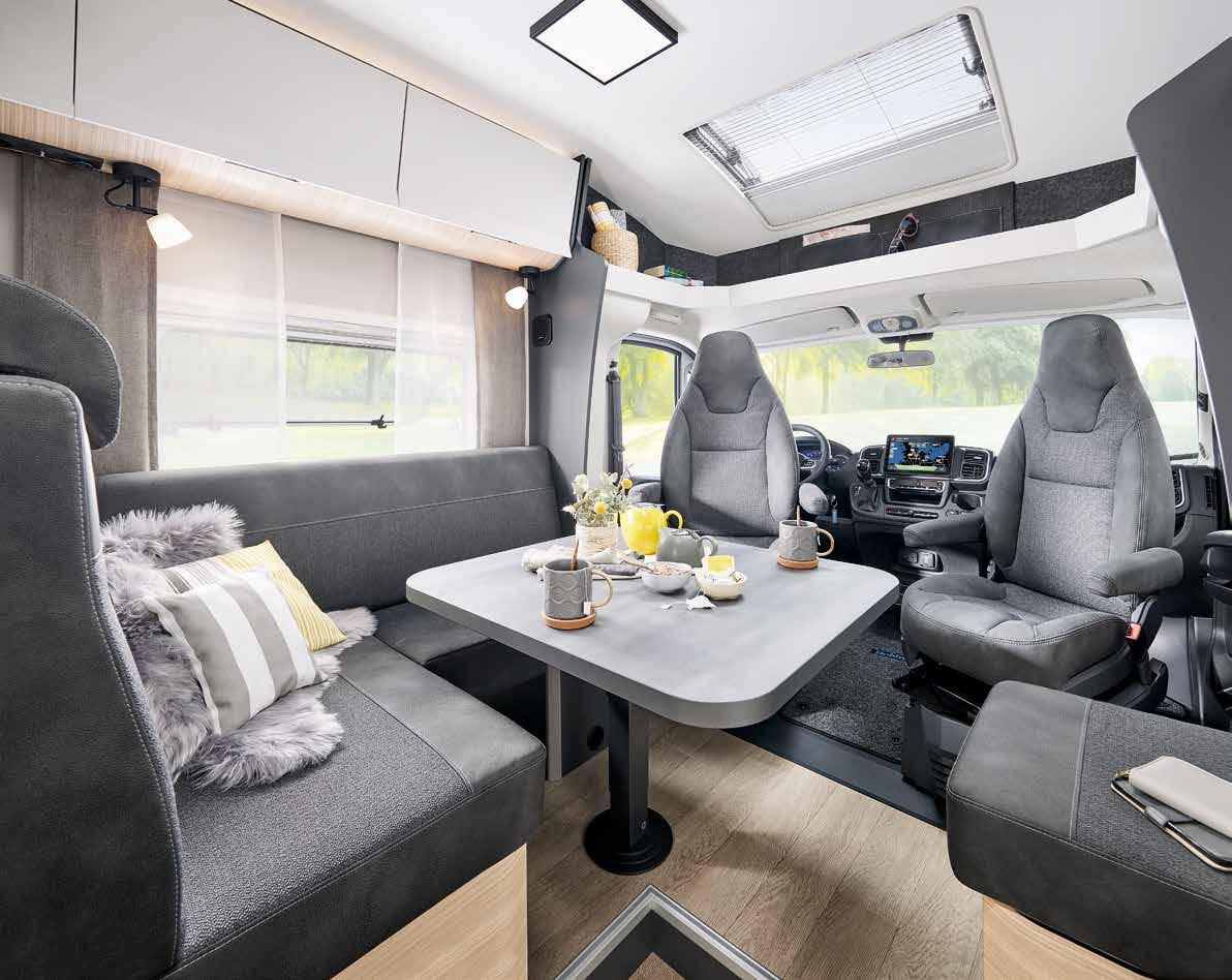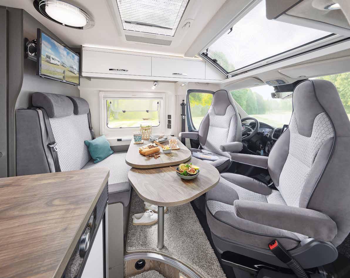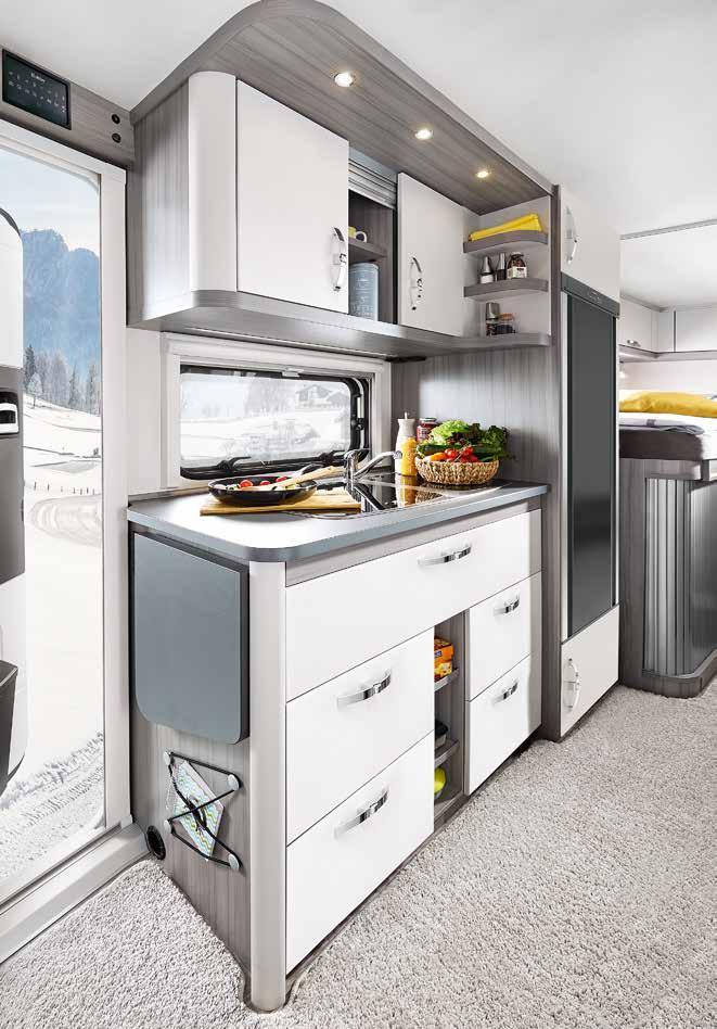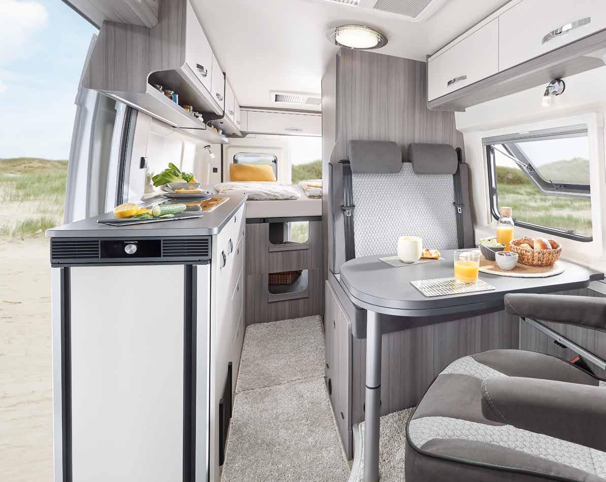Thanks to its compact dimensions (2.23 m in width), you’ll be able to negotiate narrow and bendy roads with confidence. The edition models come with a wide range of equipment and are available with two layout options – with an island bed or single beds.