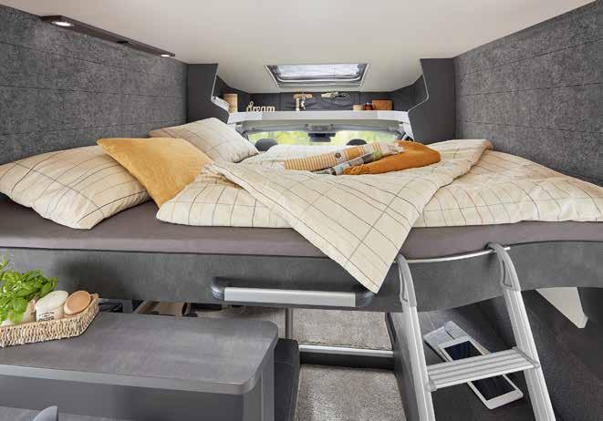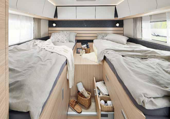 Whatever your needs, five layouts with up to five berths provide a luxurious experience. Choose between a double bed, single beds or a drop-down bed. A premium equipment package is always included, leaving nothing to be desired.