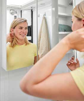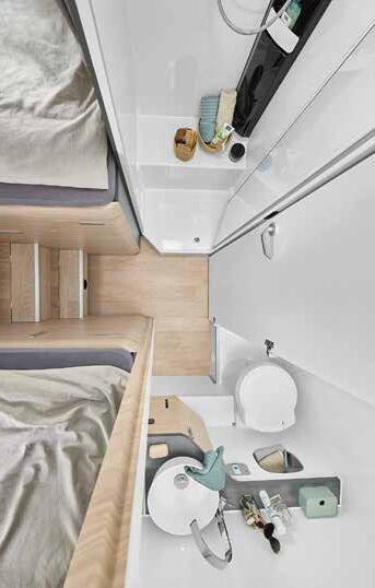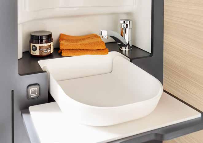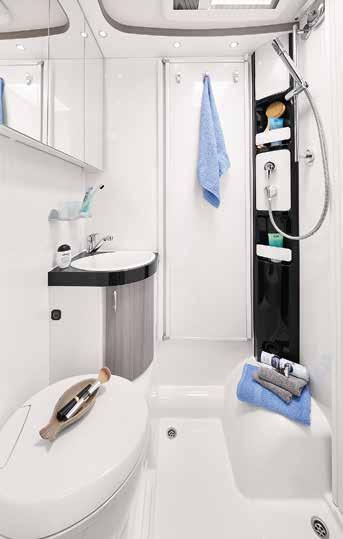 Having a bathroom on board makes you self-sufficient. Thanks to the “HobbyKomplett” ALL-INCLUSIVE package, your Hobby comes with everything you need for personal care from the very beginning. In addition to a toilet, shower and washbasin, the bathroom also has room for all your towels and other items thanks to our flexible solutions.
