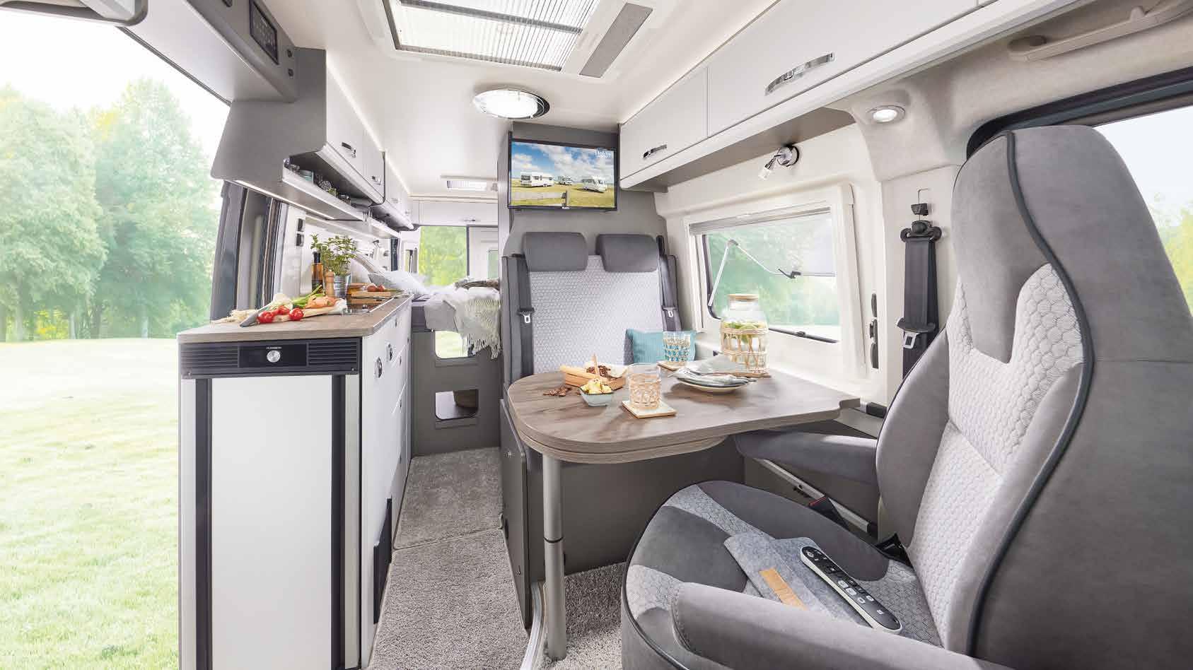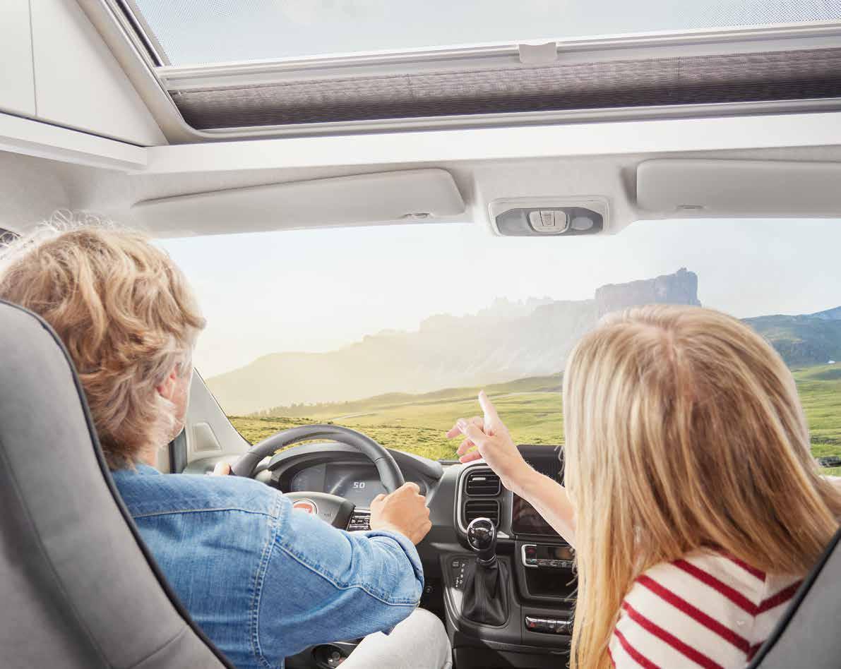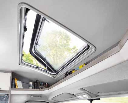 The hinged, panoramic roof vent HOBBY TOP creates an incredible feeling of space and floods the living area with plenty of daylight. Find out more about our body technology on our website.