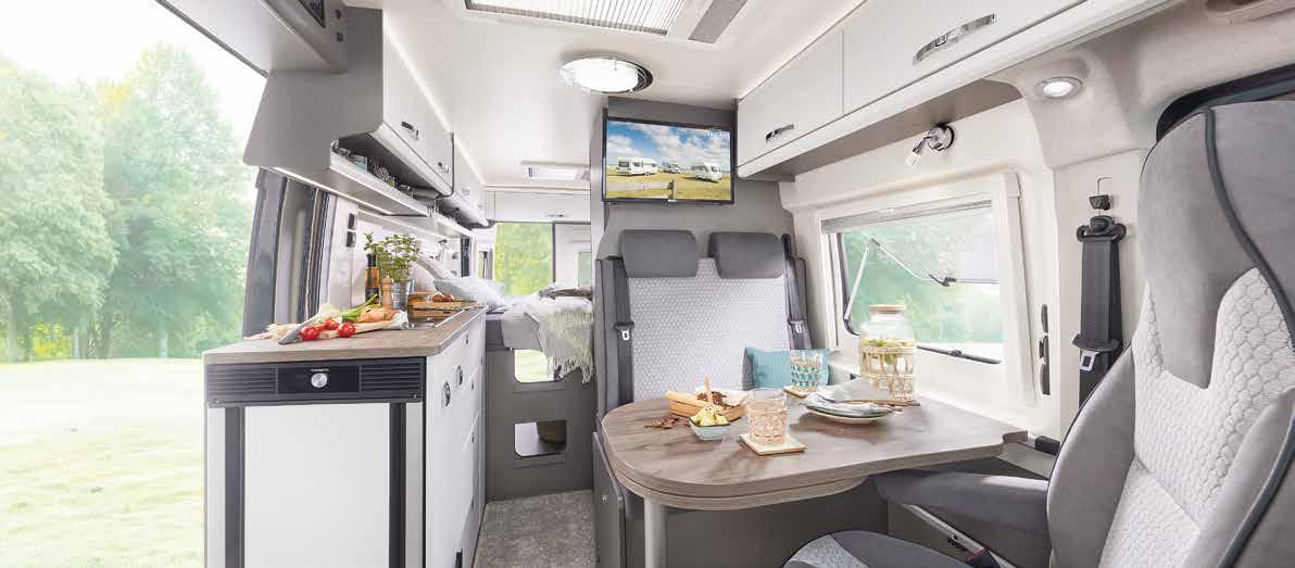 In your new Hobby caravan, modern comforts come as standard. On the following pages you’ll find an array of highlights to make holidays in our motorhomes and vans even more enjoyable. The availability of the following “HobbyKomplett” ALL-INCLUSIVE package features will depend on the vehicle model. For the exact features, please visit our website.
