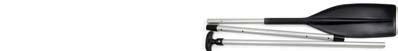 Double paddle with aluminum shaft and fiberglass reinforced plastic (80% PP / 20% FG) asymmetric blades. The 2-part aluminum tube is anodized and can be put together in 3 positions. This allows a rotation of up to 60° in both directions.