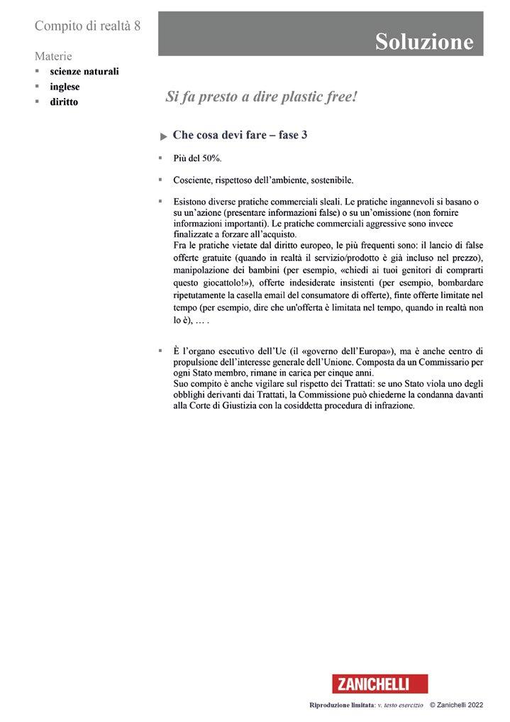 A) licenze gratuite per la riproduzione, citazione o riassunto di una parte di opera non superiore al 5%. Non è consentito superare tale limite del 5% attraverso una pluralità di licenze gratuite, B) licenze a pagamento per la riproduzione, citazione, riassunto parziale ma superiore al 5% e comunque inferiore al 40% dell’opera. Per usufruire di tali licenze occorre seguire le istruzioni su www.zanichelli.it/licenzeeducative