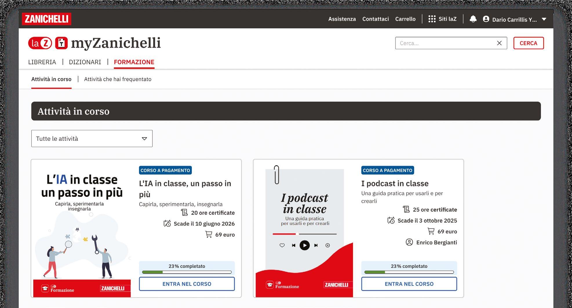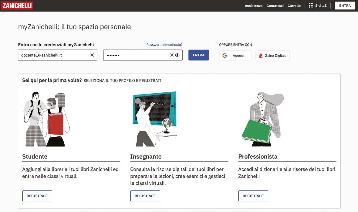 Zanichelli offre al mercato due tipi di licenze di durata limitata all’anno scolastico in cui le licenze sono concesse:
