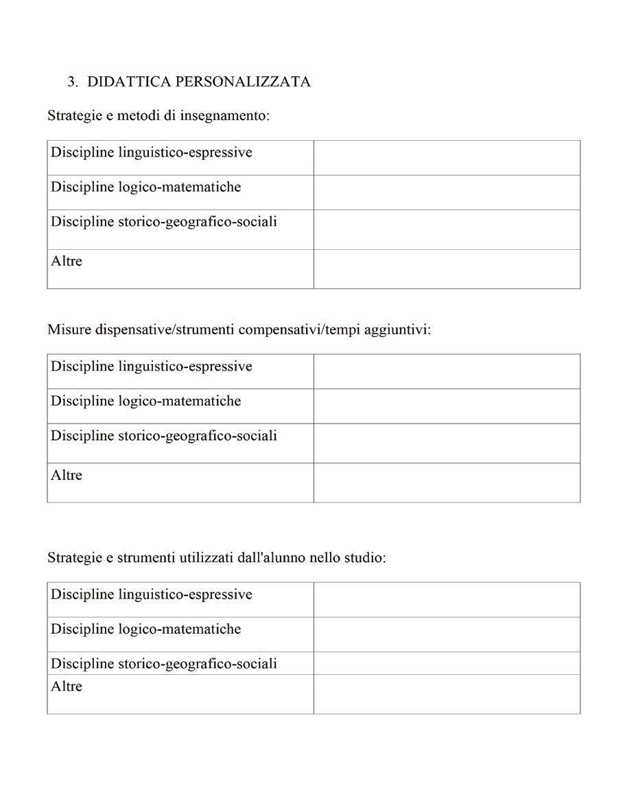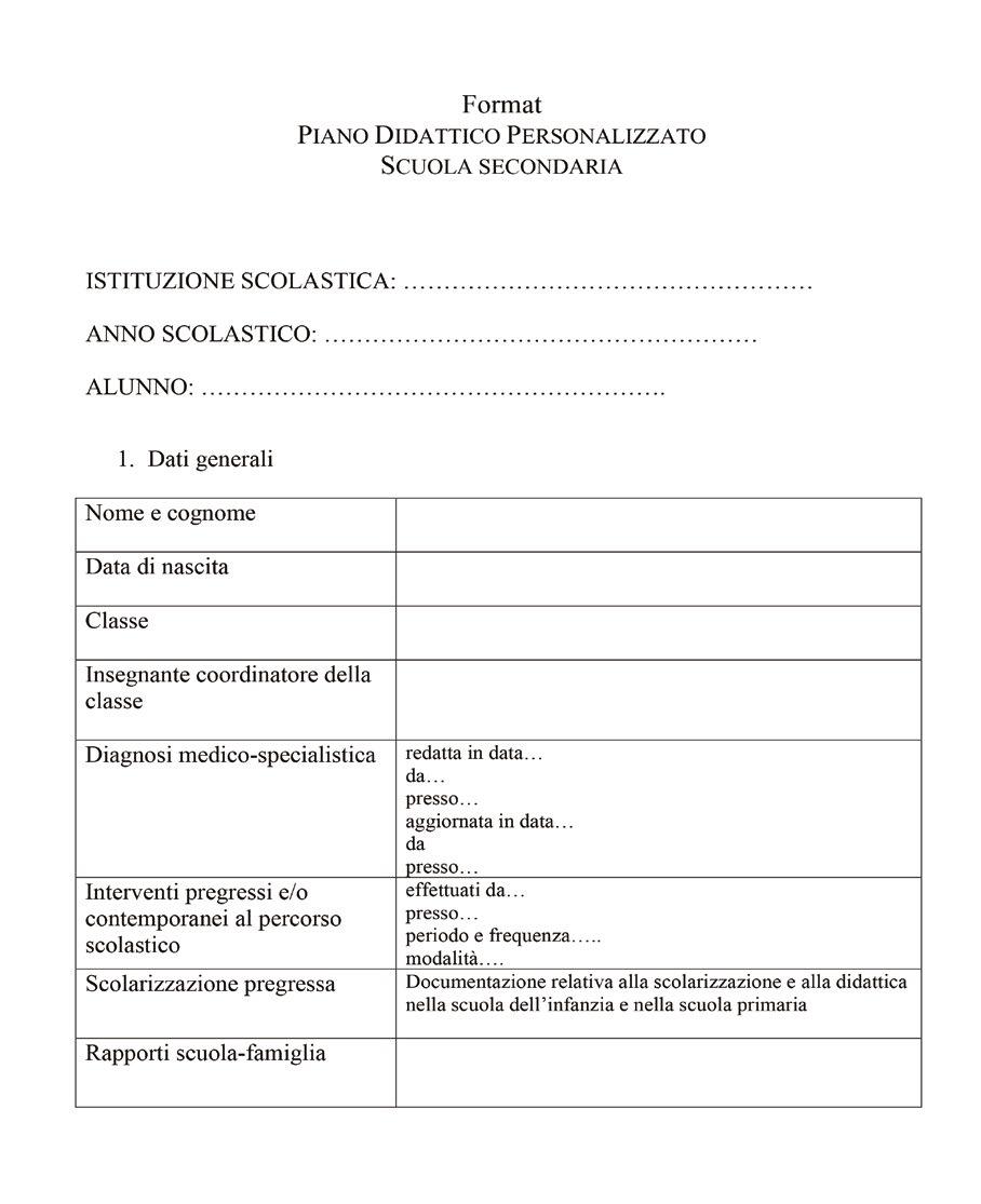 PDP redatto dal consiglio di classe in accordo con la famiglia