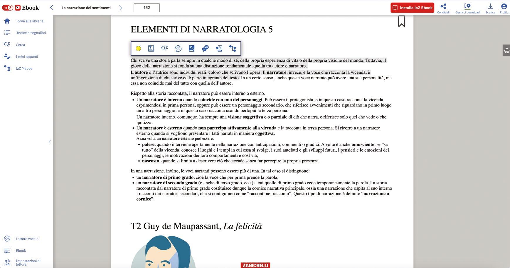 laZ Ebook ti permette di consultare gli ebook online, senza la necessità di scaricarli sul tuo dispositivo. Per accedere alla versione online, attiva il tuo libro, cercalo nella libreria myZanichelli e clicca su LEGGI EBOOK