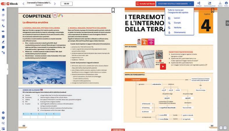 Dal 2022 Zanichelli ha creato l’Edizione Digitale per l’Insegnante per trasformare il libro digitale in una archivio digitale ordinato per gli insegnanti. Per ogni capitolo sono disponibili quattro sezioni: