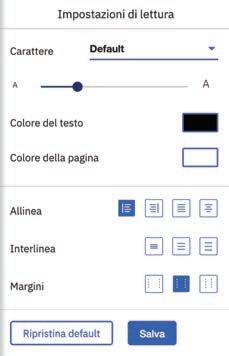 • accessibile: per personalizzare le impostazioni di lettura, attivare la sintesi vocale o la traduzione