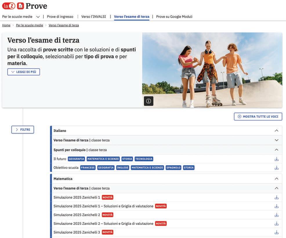 È il sito Zanichelli che raccoglie migliaia di prove ed esercizi da usare subito in classe. Gli insegnanti possono fare una ricerca per argomento, filtrare per parole chiave, oppure selezionare una delle prove già pronte del libro di testo. È possibile anche creare prove personalizzate da scaricare e assegnare come compito in classe. Le prove possono anche essere condivise in digitale, con il link, il codice identificativo o con il QRcode. Le prove di laZ Esercizi sono condivisibili anche su Google Classroom o Microsoft Teams.
