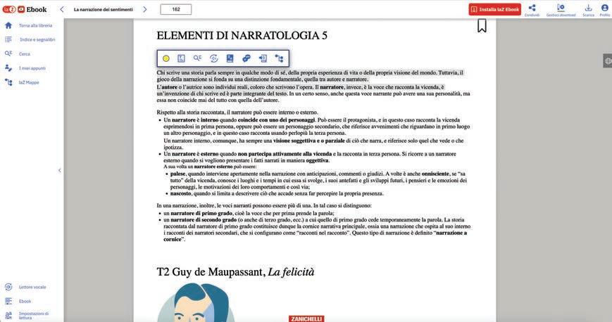 laZ Ebook ti permette di consultare gli ebook online, senza la necessità di scaricarli sul tuo dispositivo. Per accedere alla versione online, attiva il tuo libro, cercalo nella libreria myZanichelli e clicca su LEGGI EBOOK.