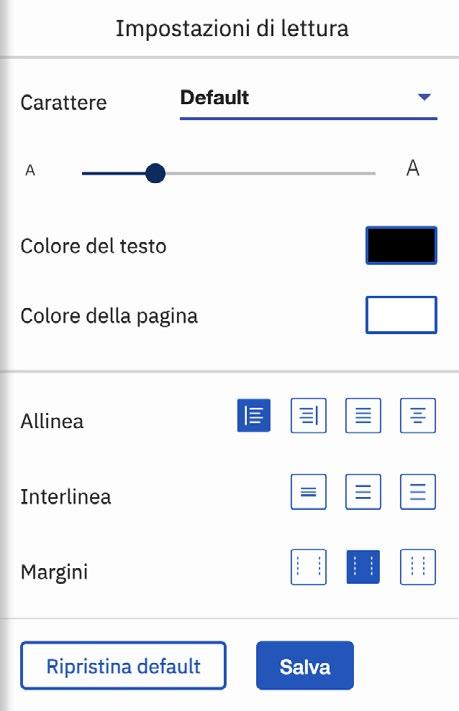 Personalizza il libro: scegli la font e la sua dimensione, modifica la spaziatura, il margine e il colore dello sfondo