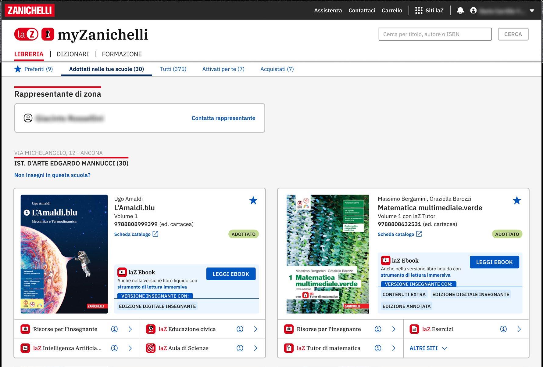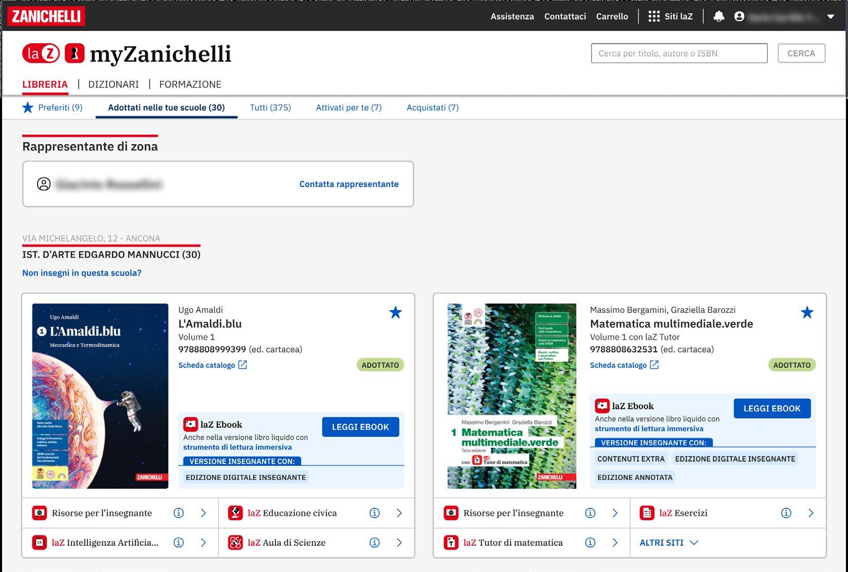 • Se insegni, trovi i libri delle scuole in cui insegni già organizzati nell’area Adottati nelle tue scuole