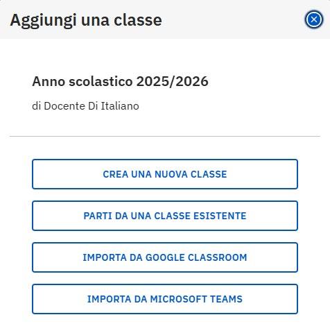 Clicca qui per creare una nuova classe