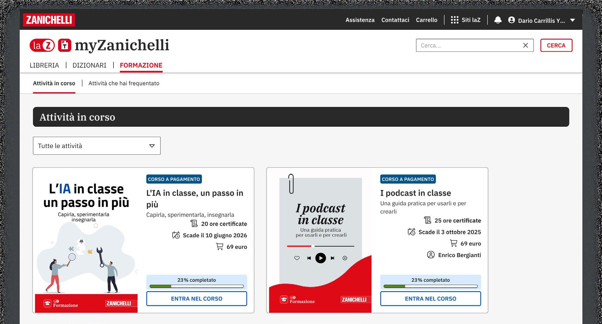 Su myZanichelli puoi attivare e consultare in digitale i dizionari e i libri Zanichelli, i siti laZ e tutte le risorse collegate