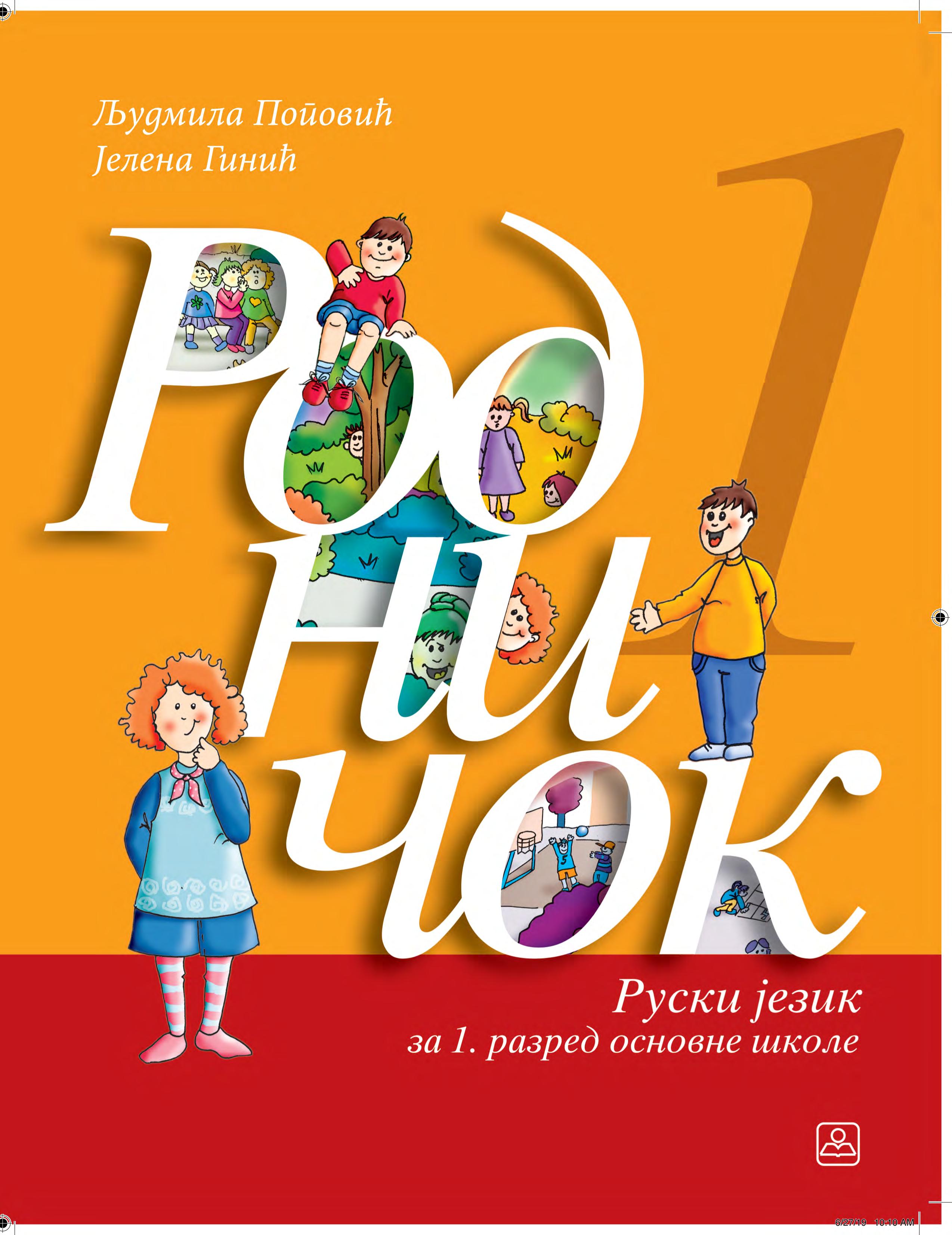 ПОПОВИЋ, Људмила, 1965Родничок : руски језик за 1. разред основне школе / Људмила Поповић, Јелена Гинић ; [илустратори Марија Вуксановић, Јелена Јеремић]. - 1. изд. - Београд : Завод за уџбенике, 2019 (Београд : Colorgrafx). - 107 стр., : илустр. ; 27 cm + [4] листа са налепницама + 1