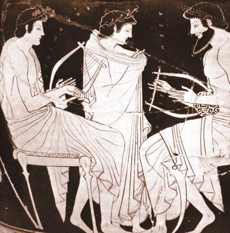 Svi drevni narodi verovali su u magiËnu i lekovitu moÊ muzike. GrËki bog Apolon bio je otelotvorewe te vere: predvodnik muza bio je naoruæan zlatnom lirom i srebrnim lukom. Bio je bog svetla i sunca, Ëuvar æivota i poretka, nepogreπivi strelac i lekar. Apolon je otac Orfeja, najveÊeg pevaËa i muziËara grËkih mitova, onog pred kojim je sam Had bio nemoÊan. Apolonov potomak je i Asklepije (Eskulap), Ëuveni lekar i potom i bog medicine. On je takoe Hadu zadavao muke, jer je svojom veπtinom leËewa mogao podizati Ëak i mrtve, pa ga je zbog naruπavawa propisanog reda stigla Zevsova kazna.
