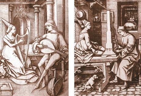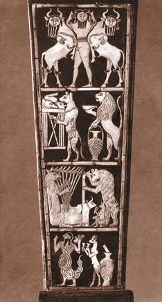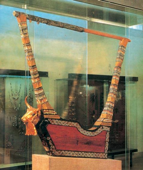 Umetak u korpusu rezonatora jedne harfe iz Ura (oko 2600. godine pre n. e.). Ona je pronaena uporedo sa ærtvenim stalkom. Slike na kojima se vide æivotiwe u nekim svakodnevnim poslovima nisu neobiËne za