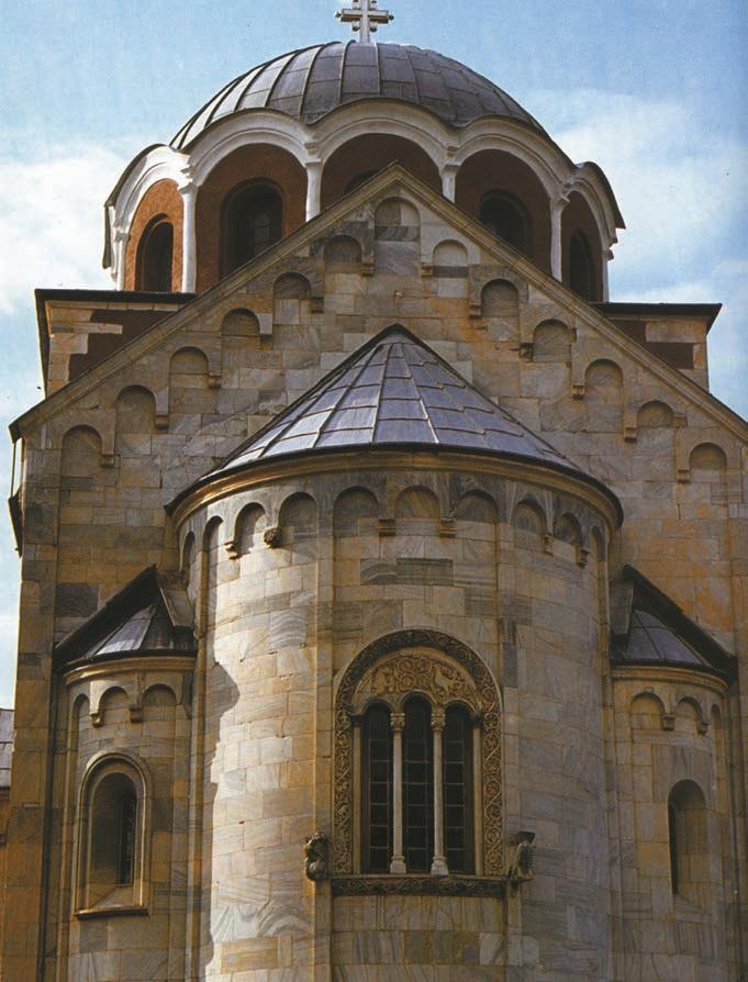 va, postavqenih na {irokoj ravnoj povr{ini, nose dva sprata, povezana slobodno nose}im stepenicama. Struktura se zavr{ava ravnim krovom. Minimum elemenata u ovoj strukturi pokazuje wegovu filozofiju ku}e. Bilo kakvi spoqa{wi zidovi, mogu se obesiti na ovaj kostur, a i unutra{wi zidovi mogu se raspore|ivati prema `eqama. Najzna~ajnije je da se ova struktura mo`e ponavqati u bezbroj varijacija. Na ovom principu zasnivaju se Korbizijeova Vila Savoja kod Pariza, [vajcarski studentski paviqon u Parizu i Jedinstvo stanovawa u Marsequ. Na Jedinstvu stanovawa u Marsequ Le Korbizije je po~eo da oboga}uje grube, neobra|ene betonske povr{ine skulptoralnim elementima – spoqnim spiralnim stepenicama. Taj novi skulptoralni stil dosti`e vrhunac u hodo~asni~koj crkvi u Ron{amu. Izgra|ena na vrhu jednog brda, izlivena u betonu, ona ima krov u obliku ~amaca i vaqkaste torweve. Dok je spoqa{wost o`ivqena svetlo – tamnim kontrastom, unutra{wi prostor je, zahvaquju}i vitra`ima i naro~itom obliku prozora, o`ivqen raznobojnom i u odre|ene ta~ke usmerenom svetlo{}u, koja stvara tajanstvenu duhovnu atmosferu. U prvoj polovini XX veka na{u arhitekturu obele`ava napu{tawe istorijskih stilova i prevladavawe secesije. Spontan i normalan razvoj arhitekture bio je prekinut Prvim svetskim ratom, iz koga je Srbija iza{la poru{enih gradova i bez tre}ine stanovnika. Zahvaquju}i nekolicini darovitih arhitekata, me|u kojima se isti~e Nikola Dobrovi}, u periodu izme|u dva svetska rata udareni su temeqi modernoj srpskoj arhitekturi. Najzna~ajnija wegova ostvarewa, me|utim, nastala su posle Drugog svetskog rata. On je inicijator izgradwe Novog Beograda i autor wegovih prvih urbanisti~kih re{ewa. Dobrovi}ev doprinos modernoj srpskoj arhitekturi je odbacivawe spoqne dekoracije i kori{}ewe najsavremenijih tehni~kih dostignu}a u na~inu gradwe i primeni materijala.