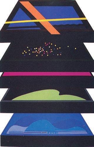 pravqena za umno`avawe, pokrivena su providnim plasti~nim listovima, koji imaju istu {aru kao i crte`, ali u obrnutom odnosu, kao negativ – pozitiv. Ta dva crte`a mogu da se sinhronizuju, plastika mo`e da se pomera gore – dole, levo – desno i tada se {ara mewa pred o~ima posmatra~a. Veliki broj Vazarelijevih dela sveden je na crno – belo, a od {ezdesetih godina on za iste opti~ke iluzije koristi bogatstvo i sjaj boja.