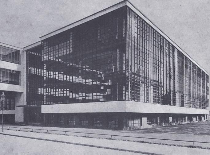 Nema~ki arhitekta Valter Gropijus projektovao je ~uvenu zgradu s radionicama {kole “Bauhaus„ u Desau, ~iji je on bio direktor. Krilo s radionicama pokazuje pravougaonu pravilnost gra|evine. Umesto nose}eg zida, tanki ~eli~ni nosa~i omogu}ili su stakleni za{titni zid iza kojeg se nalazi neprekidni enterijer.