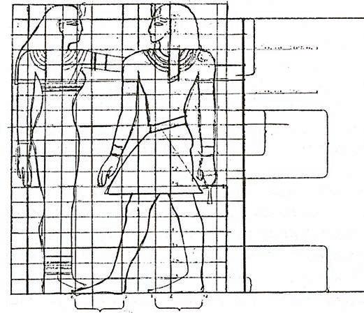 Obja{wewe. – Ovi crte`i pokazuju vezu koja odvajkada postoji izme|u qudskog tela, geometrije i umetnosti. Za podru~je Egipta otkrivena su pravila proporcije koja se zasnivaju na deqewu tela na devetnaest kvadrata, koji formiraju geometrijsku mre`u. Sve slike i skulpture starog Egipta uklapaju se u tu mre`u. Slede}i crte` pokazuje anti~ke, gr~ko-rimske proporcije, kako ih je dao rimski arhitekta Vitruvije. Veza izme|u qudskog tela i geometrije proizlazi iz kvadrata, a odnosi pojedinih delova tela zasnivaju se na brojevima 2, 3 i 5, tj. na zlatnom preseku, kako smo ga ve} objasnili. I, najzad, na posledwem crte`u je Le Korbizijeov “^ovek„ izliven od betona, koji stoji u holu stambene zgrade u Marsequ i ukazuje na zna~aj ~ovekovih mera u modernaj arhitekturi. To je Le Korbizijeov “modulor„, na kome se zasnivaju sve dimenzije ove gra|evine.