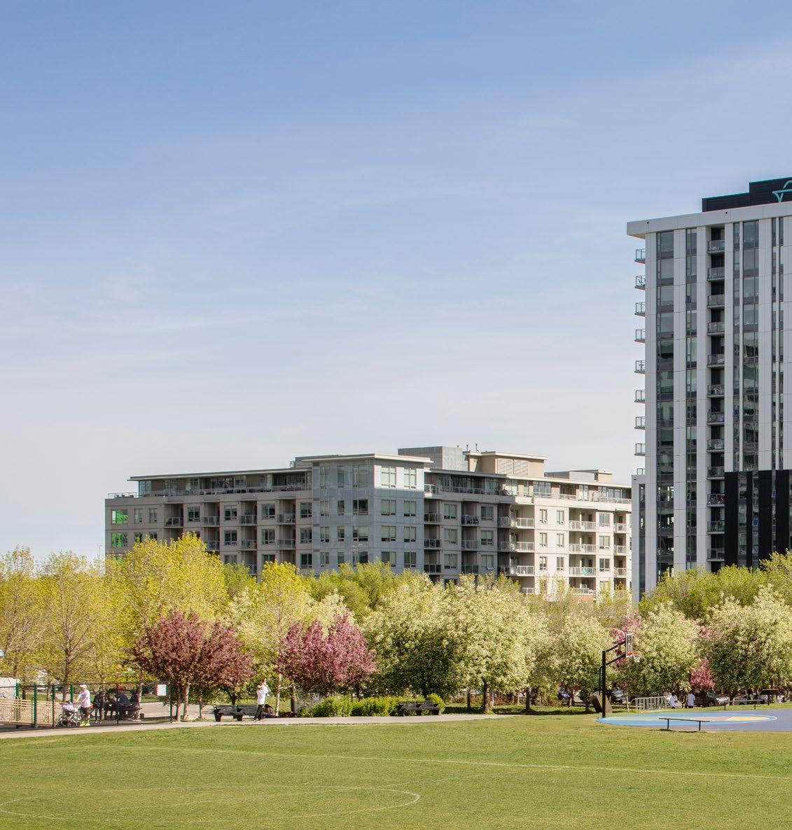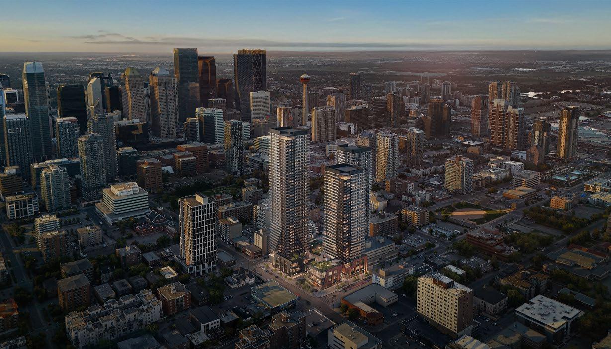 Broadway on 17th contributes boldly to Calgary’s skyline with a trio of towers, including the city’s tallest residential building, while carefully shaping a vibrant, pedestrian-first streetscape below . .