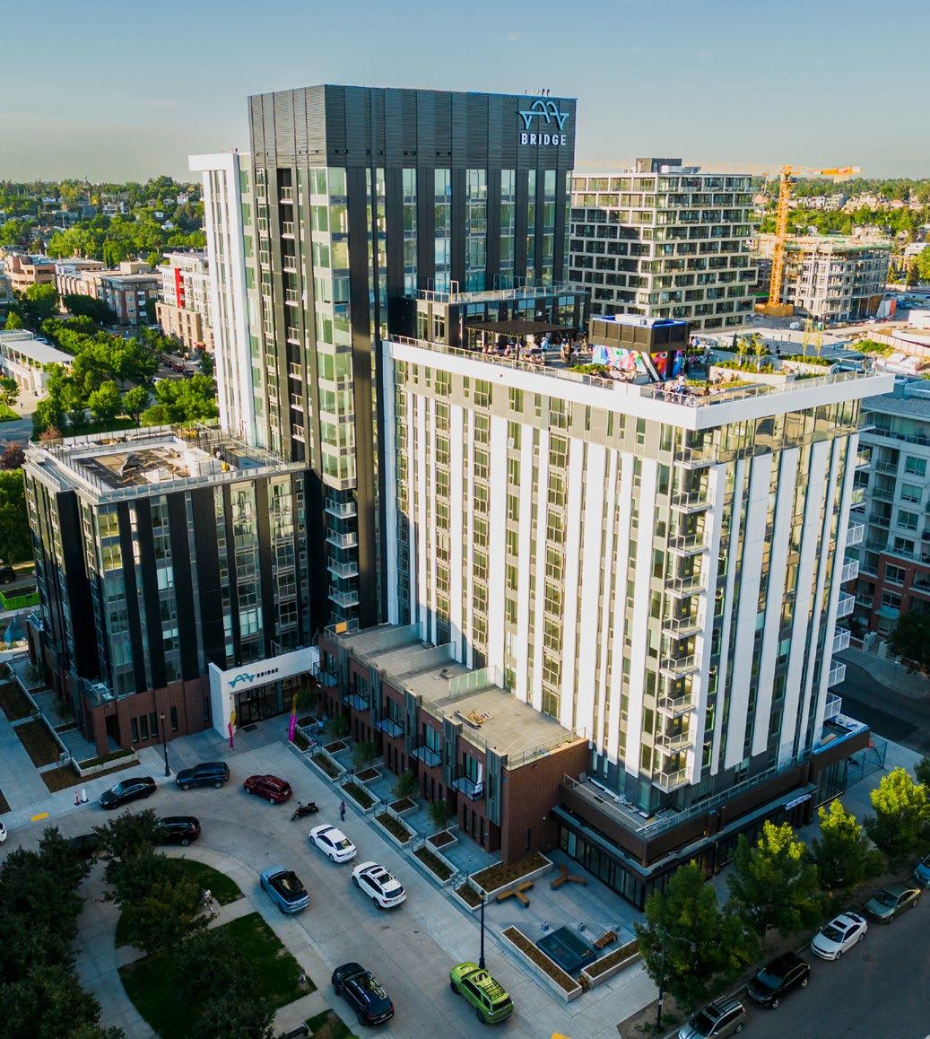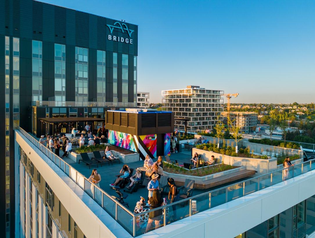 The rooftop at Bridge at Bridgeland is a purposeful extension of the residential experience—well-crafted outdoor space that captures views, encourages connection, and makes meaningful use of the building’s uppermost plane .