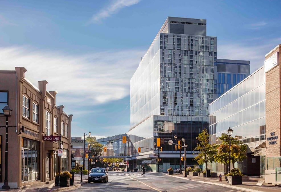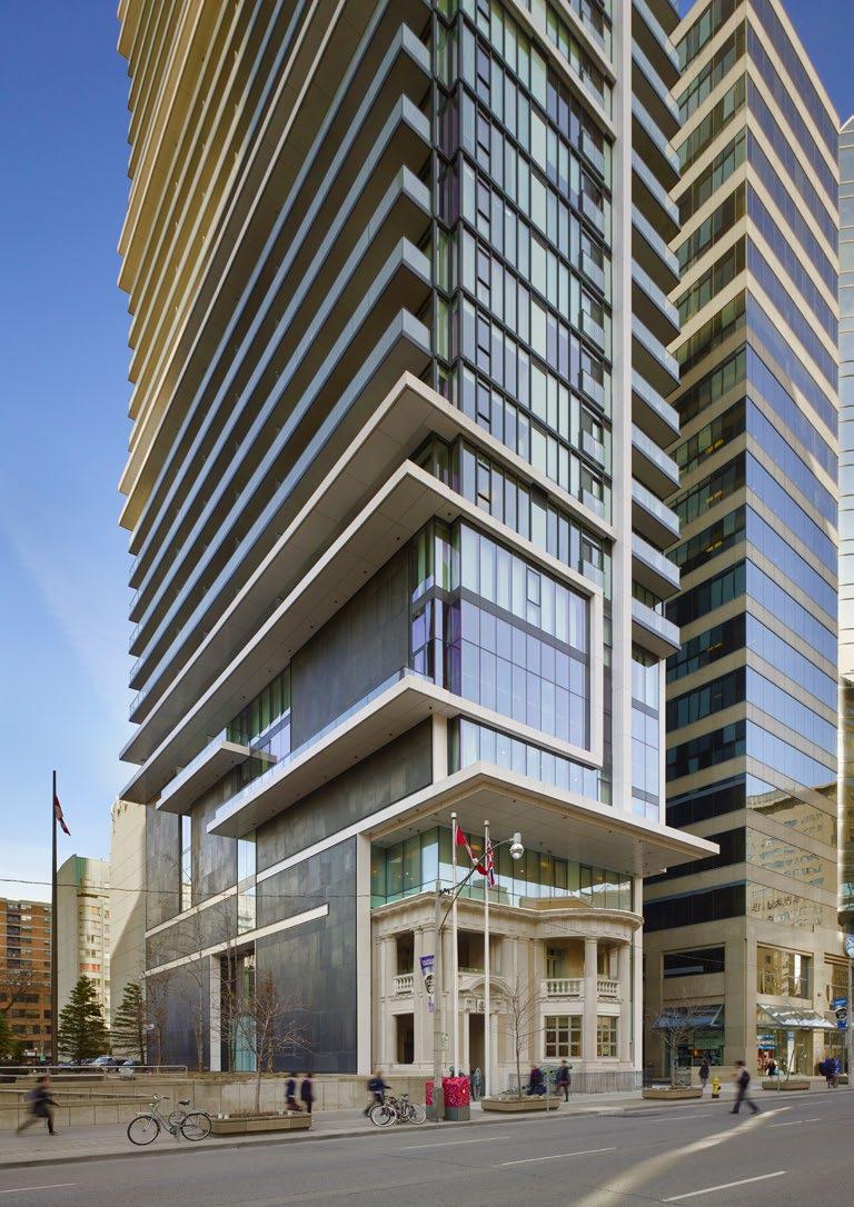 The redevelopment of Rideau Registry preserves and reimagines the historic Registry Office through adaptive reuse, integrating it into the new tower with a striking three-storey glass atrium that bridges old and new .