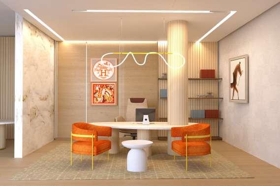 ENTRANCE SECURITY AND ARCHIVE ROOM GROUND FLOOR CEO OFFICE SECRETARY OFFICE HR OFFICE MEETING AREA SECRETARY OFFICE WC F WC M DISPLAY AREA FRONT DESK AND WAITING AREA 4 5 7 8 10 11 12 13 14 15 16 17 18 19 28 27 26 25 24 23 22 21 20 A-A A-A A B FRONT DESK INTERIOR ELEVATION A FINANCE OFFICES WORKSPACE GF GF OFFICE INTERIOR ELEVATION B Section A-A Hermes Company Inspired by horse saddle lines