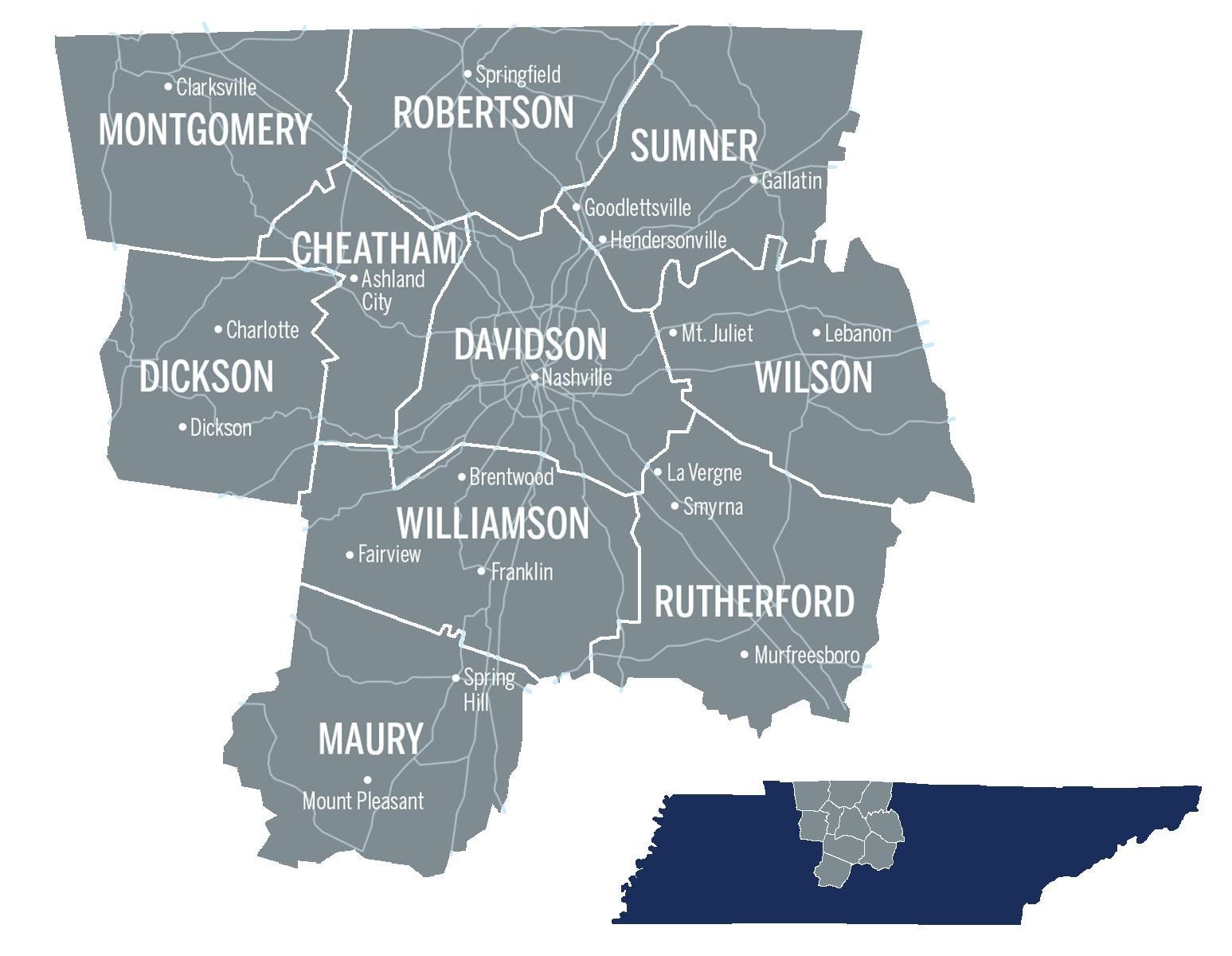 One of the fastest growing and most populated counties in the state, Davidson County seems to have it all. The downtown is an entertainment epicenter making it a go–to area for lovers of urban living, providing easy access to 24/7 live music, a bustling nightlife, trendy boutiques, coffee shops, bars and upscale restaurants. A vibrant environment, it’s undeniably one of the most popular hot spots with a variety of styles ranging from modern/contemporary homes, condos and lofts, and high-rise living with lots of new construction options. The outskirts of the city are filled with popular university neighborhoods, walking and biking trails, lakes, art centers, pristine green space, dog parks, and community and art festivals. Davidson County suburban living is full of elegant, sophisticated, and historical areas with housing styles that include stately Tudors, estates, modern masterpieces, and contemporary structures. Witness 1960s ranches on large lots alongside Cape Cod and Craftsman–style homes surrounded by beautiful mature trees.