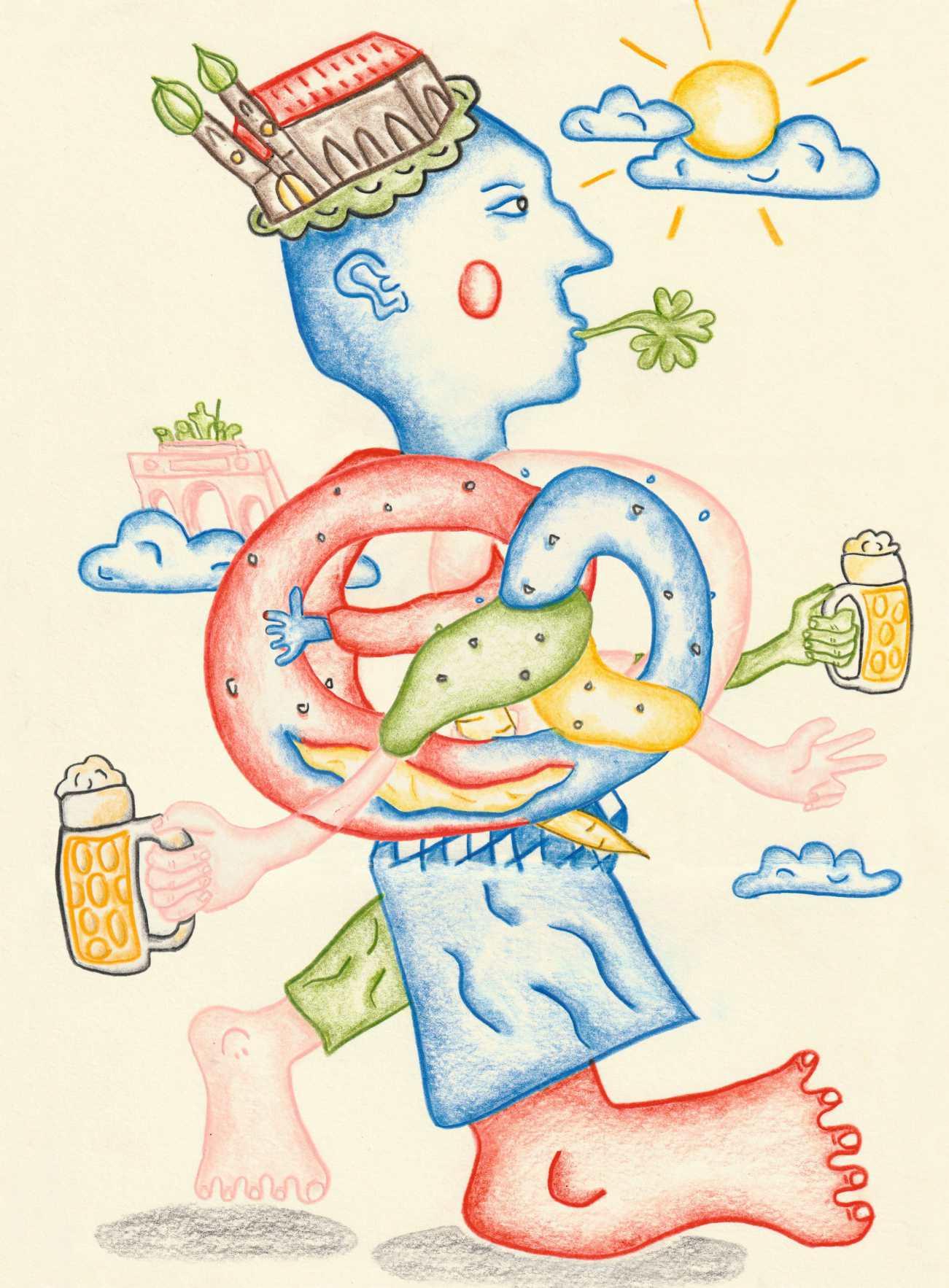 In München herrscht eine für Außenstehende vermutlich etwas kuriose Fixierung aufs Essen und Trinken. Man braucht sich nur den Stadtkern auf einer Karte anzusehen, den Viktualienmarkt im Zentrum, die Pferdemetzgerei Wörle, die Schmalznudel, gegenüber die Schrannenhalle voll italienischer Feinkost – das Herz der Stadt ist in München der Bauch. Seit ich vor acht Jahren aus München weggezogen bin, bemerke ich immer stärker, wie mich die Stadt geprägt hat. Klar, es kann schon sein, dass ich mir im Exil eine idealisierte bayerische Heimat erschaffe. Die Münchner Polizei? Wunderbar. Die Kirchen? Eine Pracht. Die Politik? Ein zünftiges Miteinander von SPD, Grünen und CSU im Biergarten. Gendern, Veganismus, Diversity? Irgendwie wurscht, soll jeder machen, wie er lustig ist. Münchner Freiheit.